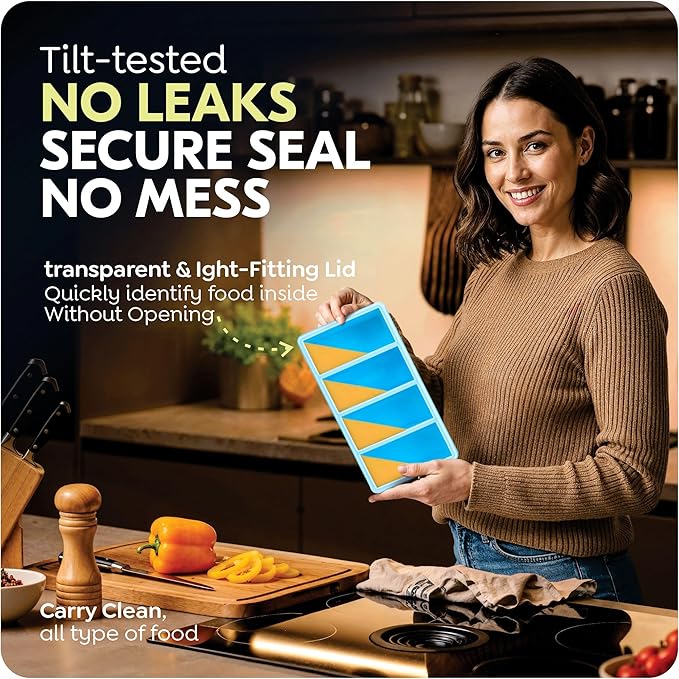 - Superior leak-proof design: Each tray features a transparent sealing lid, ensuring each compartment is independently sealed to effectively lock in food freshness and prevent leakage. The transparent design allows you to quickly identify the food inside without opening the lid